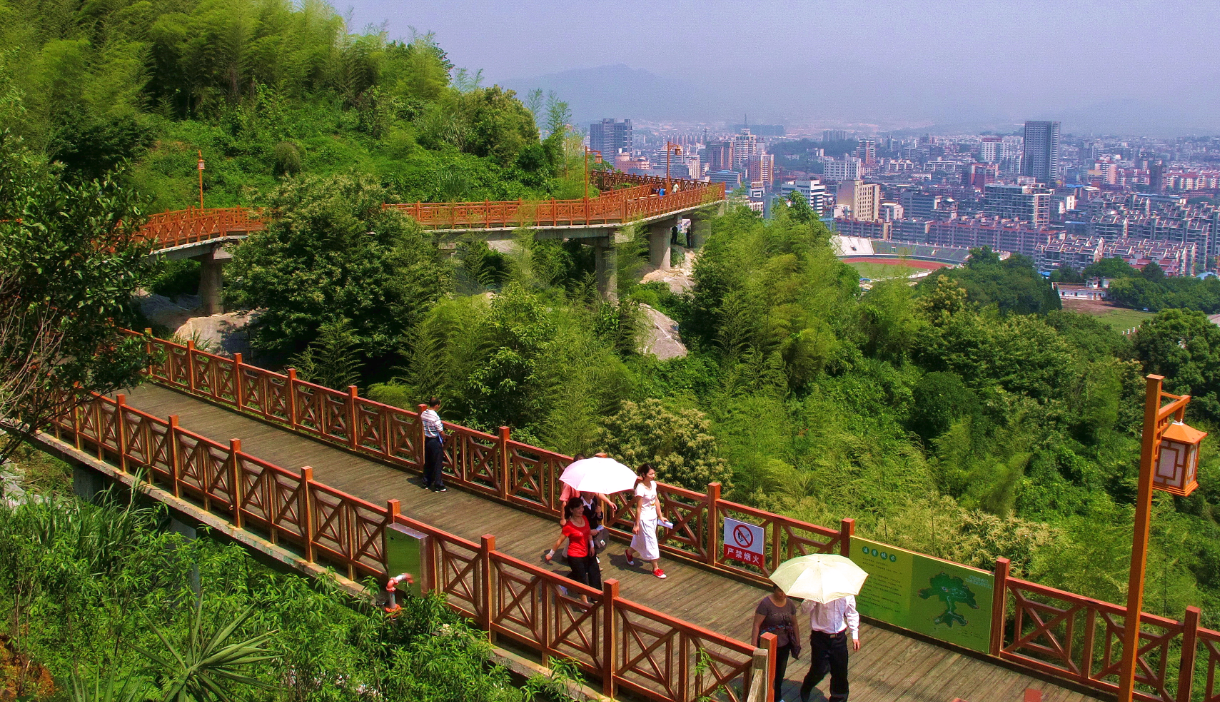 蓮花山底南環(huán)路地面標高為330米,山頂標高為490.606米,山高160米左右,山頂已開發(fā)為休閑場所,并建有世紀鐘樓,山腳可挖掘的景點不多,因此決定在半山腰開辟一條市民休閑的木棧道,將公園增加一個休閑觀光的好場所,并可成為蓮花山一道亮麗的風景線。因此在半山腰422米高程建設(shè)一條環(huán)山的木棧道。為盡量少破壞山體植被,木棧道采用棧道橋形式,全長3781.88米,全寬3.5米(包括欄桿寬度),凈寬3.0米,蓮花山棧道橋工程總投資7610萬元。