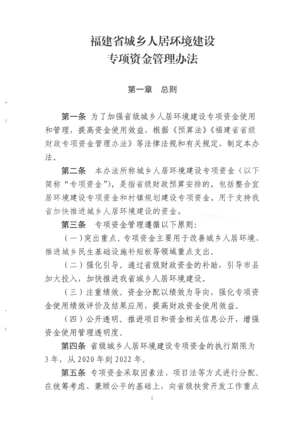 福建省財(cái)政廳福建省住房和城鄉(xiāng)建設(shè)廳關(guān)于印發(fā)《福建省城鄉(xiāng)人居環(huán)境建設(shè)專項(xiàng)資金管理辦法的通知》(閩財(cái)建[2020]3號(hào))